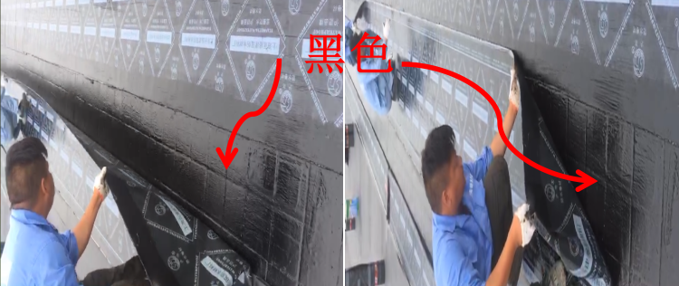貼必粘在基面上(shàng)剛開始塗刷時(shí)呈黃(huá得紅ng)棕色,氣溫高時(shí)5-15分(fēn)鐘即變成黑色(氣溫低(dī新日)時(shí)要30-45分(fēn)鐘),此時信什(shí)用手指去輕按黑色塗膜,手感有粘子家性但(dàn)不會粘附于手指上(shàng),此時(shí)即可将卷材于基我那面進行粘貼(如(rú)圖)。